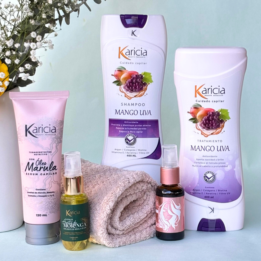 Este kit es un homenaje a su belleza natural, con fórmulas diseñadas para cuidar, fortalecer y devolverle al cabello todo su esplendor.