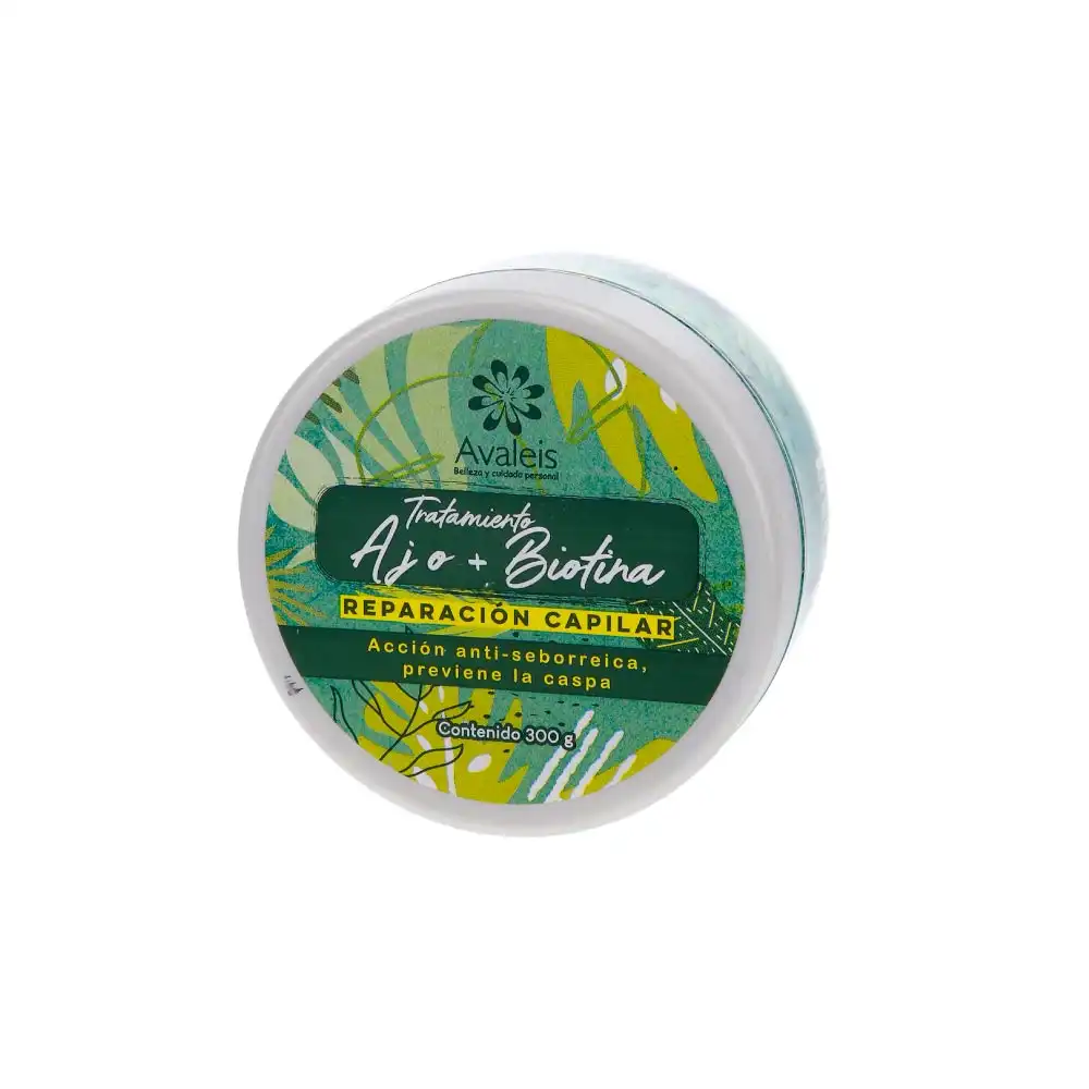 El tratamiento de ajo y biotina es un reparador capilar que nutre y reconstruye el cabello a profundidad, gracias a su acción anti- seborreica previene la caspa y ayuda a su control.