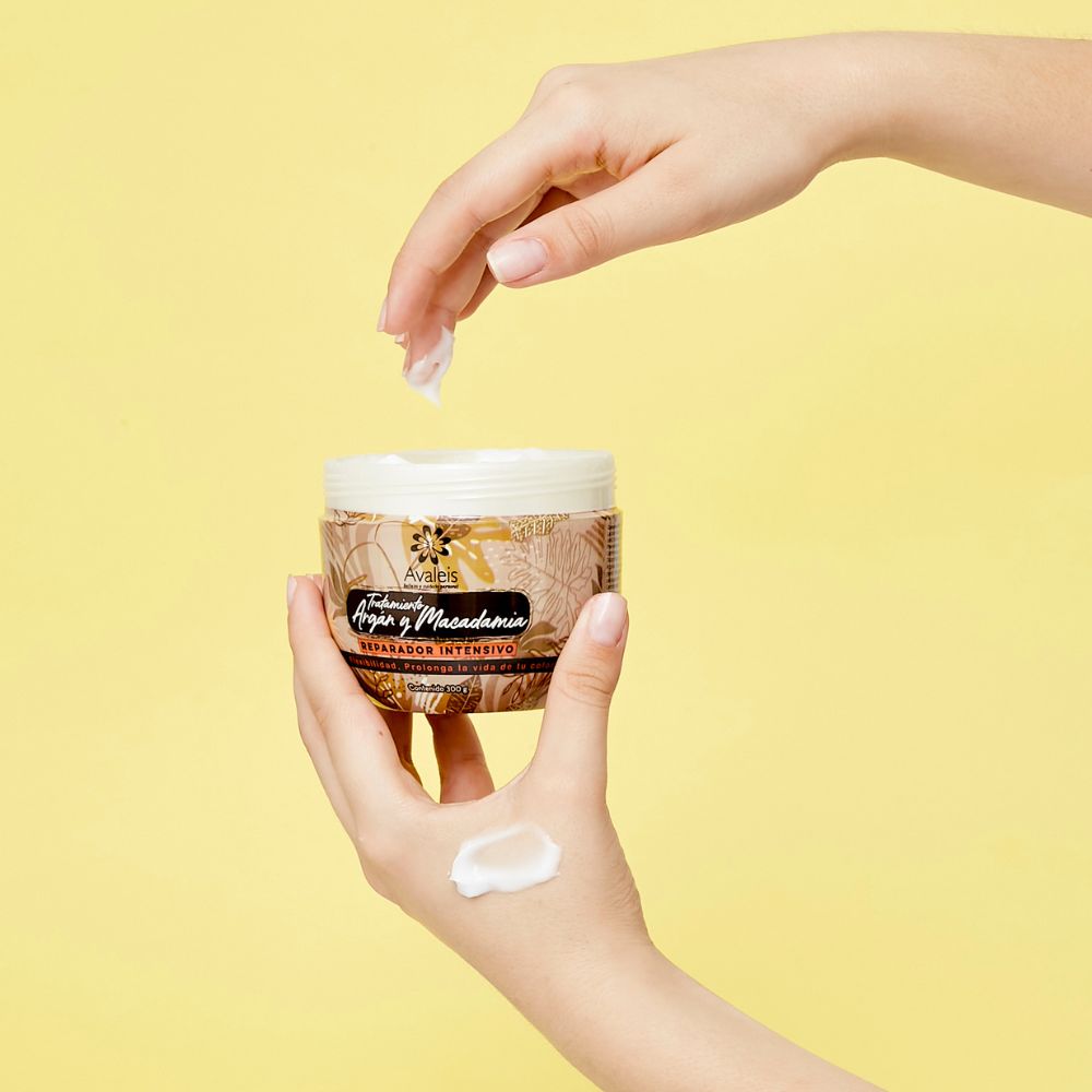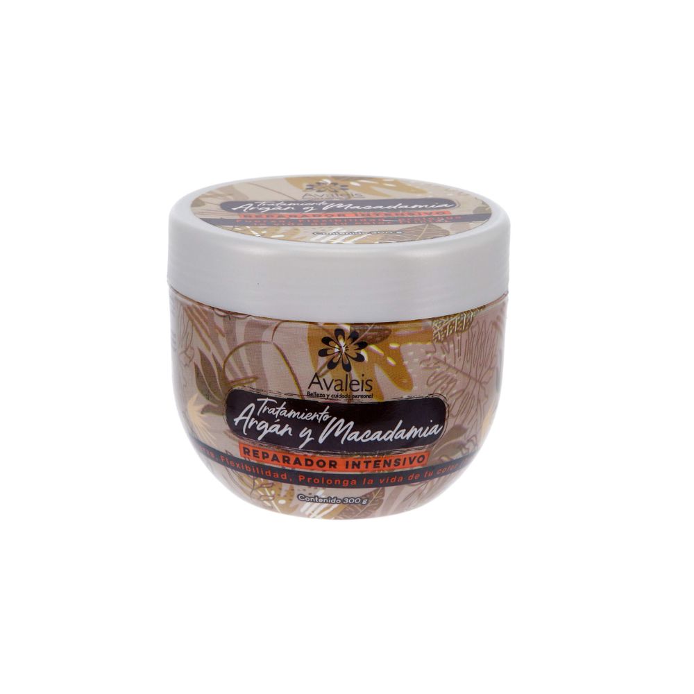 El tratamiento de Argán y Macadamia de Avaleis nutre, repara e hidrata el cabello seco y dañado, fortaleciendo y aportando brillo y suavidad. Protege del calor del secador y la plancha, repara puntas abiertas, es antioxidante, anticaída, antifrizz y anticaspa.